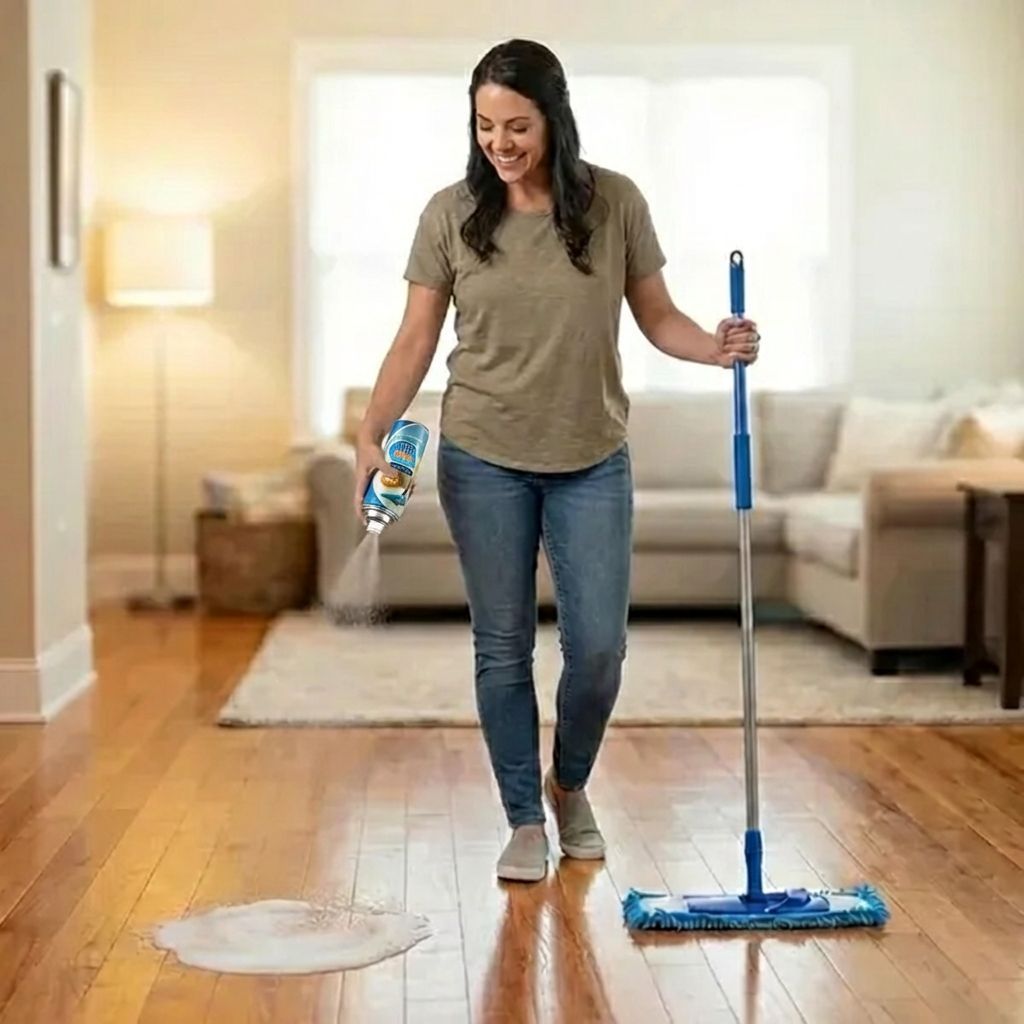 - Just flip the can, spray, mop, and you’re done.